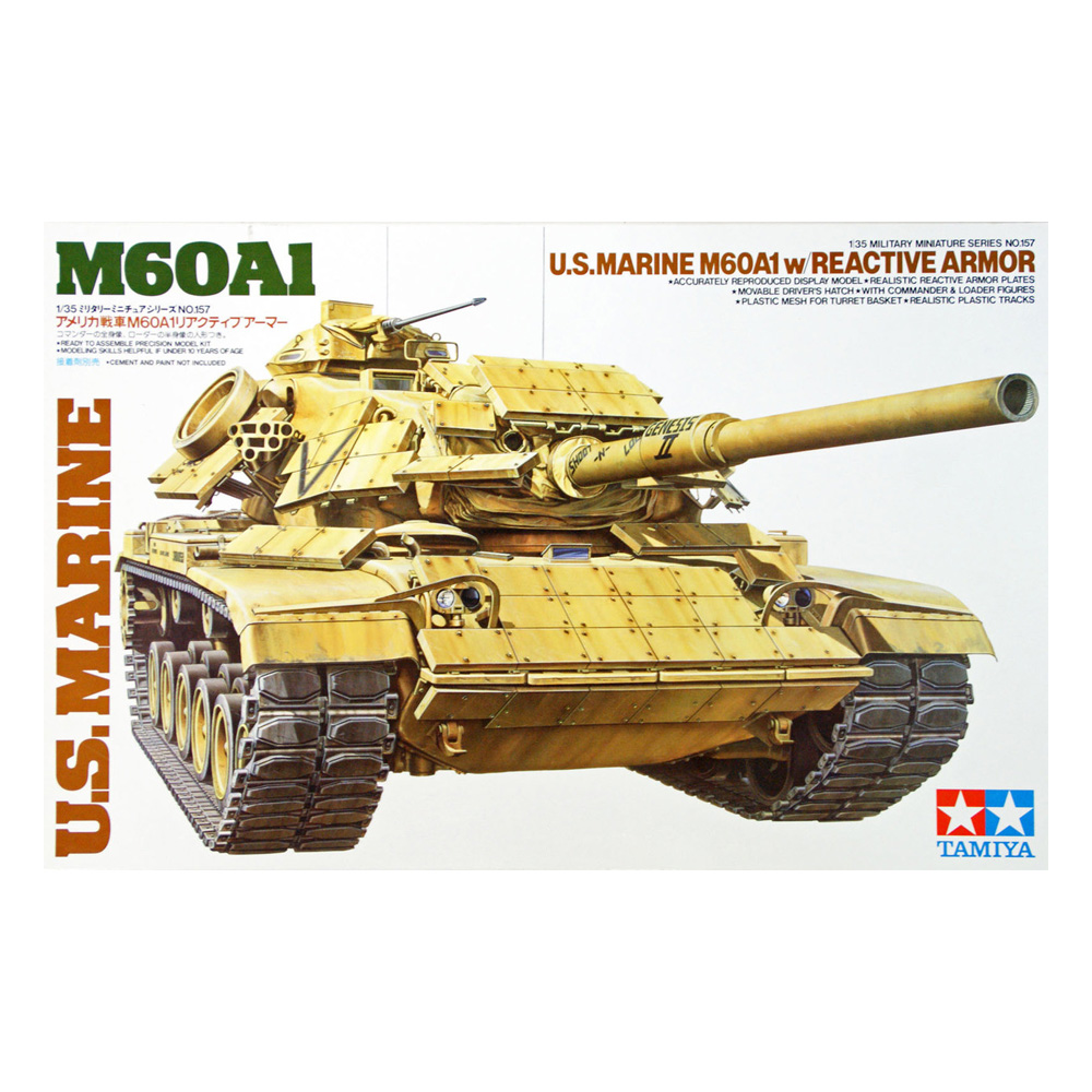 US Mar. MBT M60A1 w/Reactive Armor (3) je model američkog tenka M60A1, verzije koja je korišćena od strane marinskih snaga, sa dodatnim reaktivnim oklopom, u razmeri 1:35. Model sadrži precizno izrađene delove i autentične oznake, a za kompletan izgled potrebno je da se model sastavi i oboji. Idealno je za modelare koji uživaju u detaljnoj izradi i personalizaciji svojih modela.