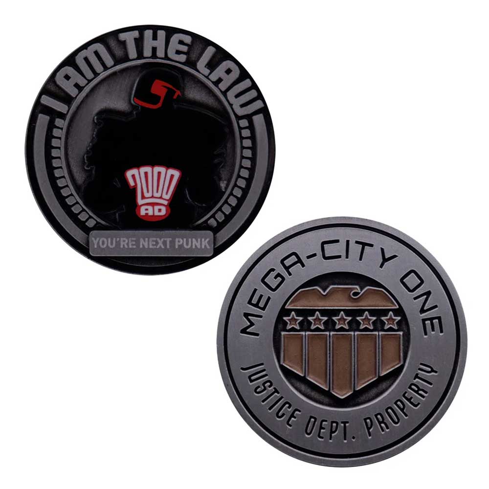 Ovaj limitirani zlatnik prikazuje siluetu Dredd-a na prednjoj strani, dok je na poleđini logo Odeljenja pravde Mega-City One. Svaki primerak je deo serije od 9.995 komada širom sveta i pojedinačno numerisan na prednjoj strani.