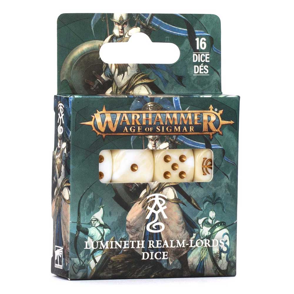 Set od 16 šestostranih kockica sa zaobljenim ivicama za korišćenje u igrama Warhammer Age of Sigmar, tematski osmišljenih oko frakcije Lumineth Realm-lords. Izrađene su od akrilne plastike u boji slonovače i bele sa vrtložnim efektom, sa oznakama u zlatnoj boji, i imaju dužinu ivice od 16 mm. Strane sa brojevima 1–5 imaju klasične tačkice, dok je svaka strana sa brojem „6“ ukrašena plemenitim simbolom frakcije Lumineth Realm-lords.