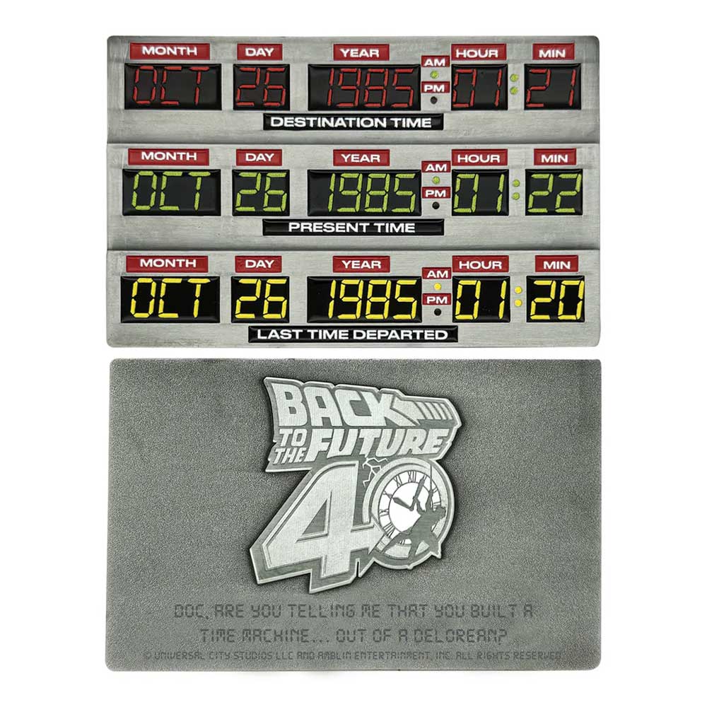 Oprema koja se koristi da DeLoreanu kaže gde (ili bolje rečeno, kada) želiš da ideš – vremenski krugovi – bili su sastavni deo vremenske mašine i jedan od genijalnih Docovih izuma. Ova limitirana poluga, koja prikazuje ekran vremenskih krugova, dimenzija je 90 x 56,5 mm i ograničena je na 1.985 primeraka, u čast 40 godina od izlaska filma Back to the Future. Svaki primerak je pojedinačno numerisan na poleđini i dolazi sa postoljem za izlaganje, kao i umetničkom karticom.