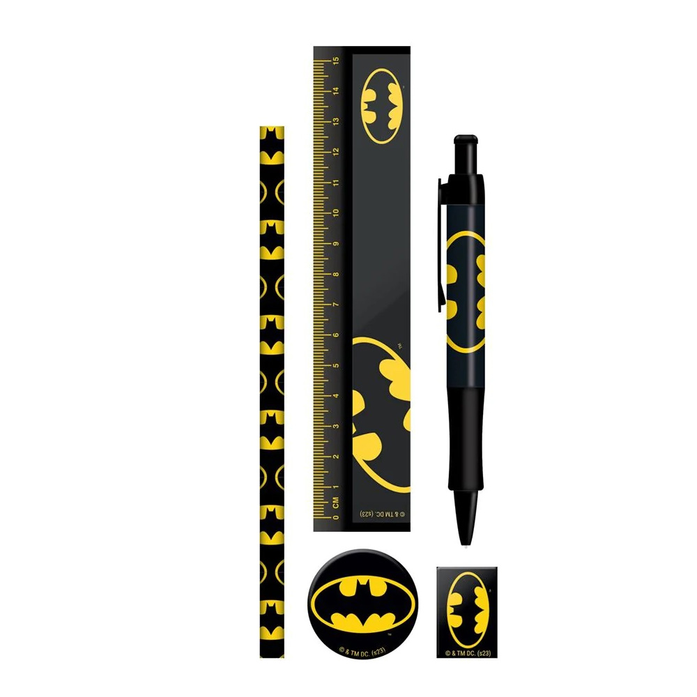 Školski set dekorisan motivima iz popularnog filma Batman. Set sadrži grafitnu olovku, hemijsku olovku, lenjir, gumicu za brisanje, rezač kao i futrolu.