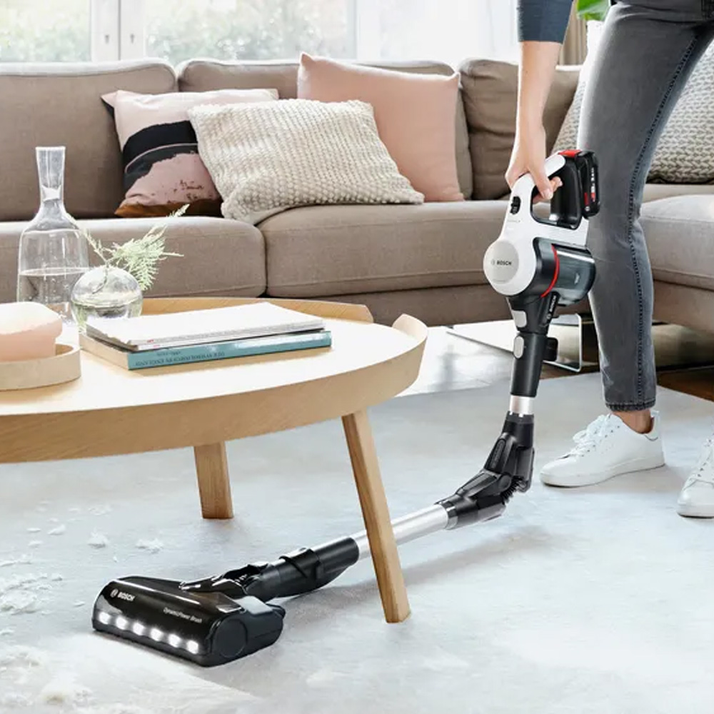 Bosch Štapni akumulatorski usisivač Unlimited 7 omogućuje lako čišćenje zahvaljujući praktičnim funkcijama kao što su fleksibilna cev i Quick Stand. Zamenljiva baterija od 3.0 Ah (Power for all Alliance) obezbeđuje čak 33% duži rad, a motor TurboSpin je brži, lakši i efikasniji za impresivne performanse čišćenja. Četka AllFloor DynamicPower sa integrisanim podnim svetlima usisava više od 99.9%.