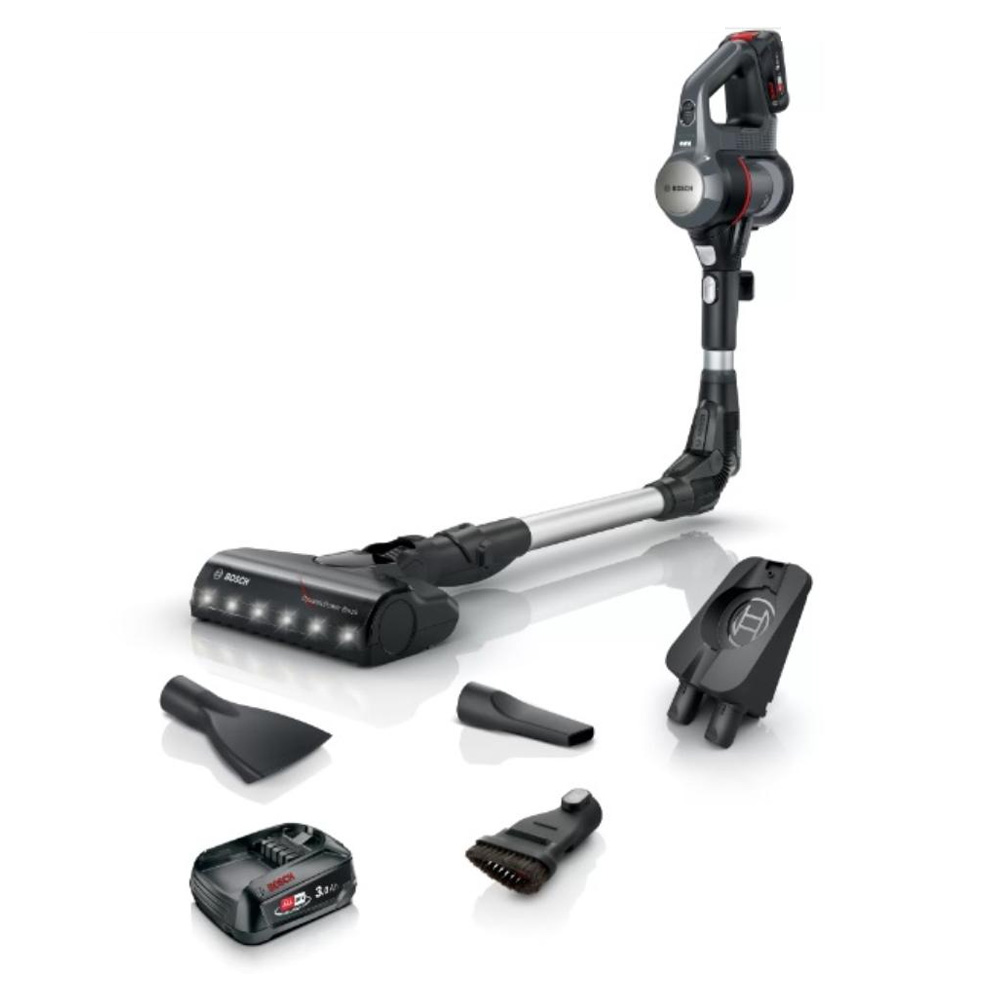 Bosch štapni usisivač sa posudom. Ima praktične funkcije kao što su Quick Stand, otpuštanje papučice nogom i kopču za lako odlaganje koje olakšavaju proces čišćenja.Cev koja se savija pod uglom od 90° za lako čišćenje ispod niskog nameštaja.Četka AllFloor DynamicPower Brush sa LED svetlima: jedna električna papučica za intenzivno čišćenje svih vrsta podovaMotor TurboSpin: sa garancijom u trajanju od 10 godinaProduženo vreme rada: zamenjive baterije omogućavaju produžetak vremena rada po potrebi