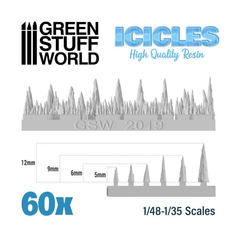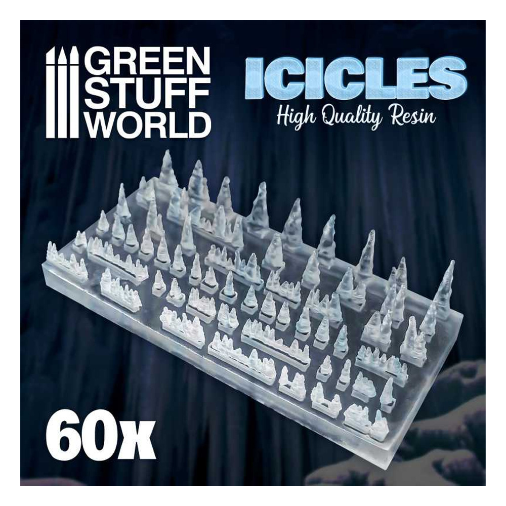 Stalaktiti i ledenice od providne smole visokog kvaliteta. Ovi dodaci se mogu koristiti za minijature na temu leda i snega ili za zamrznute pećine, diorame i to su samo neke od ideja!