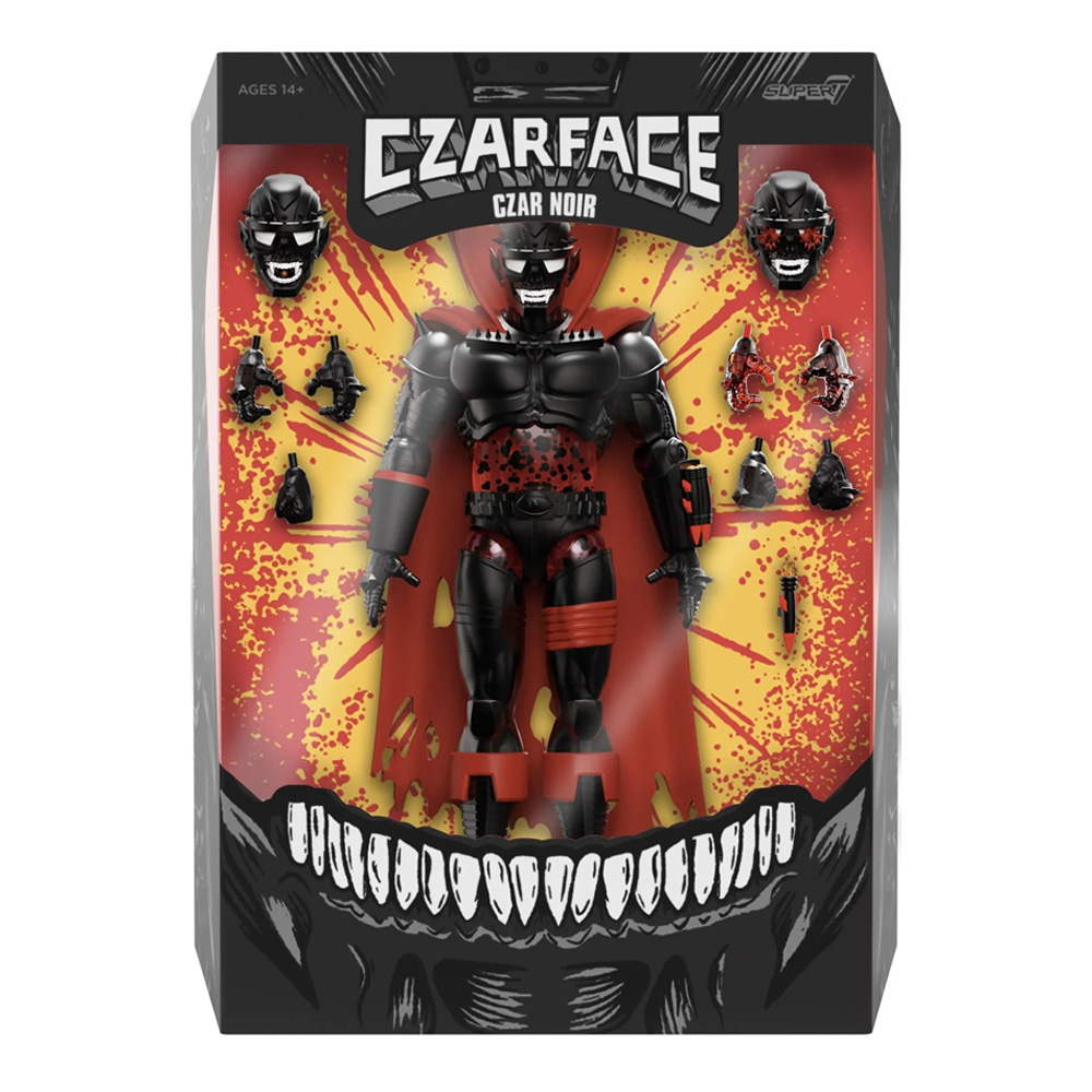 Inspirisan zajedničkim albumom Czarface-a i MF DOOM-a, Super What?, ova visoko artikulisana Czarface ULTIMATES! figura u razmeri od 18 cm izgleda kao oličenje zla, sa sjajnom crnom šemom boja i metalik detaljima u krvavo crvenoj boji. Sa složenom izradom i vrhunskim detaljima u boji, figura dolazi sa više zamenjivih glava i ruku, zamenjivim projektilima na podlakticama i uklonjivim plaštom od tkanine.