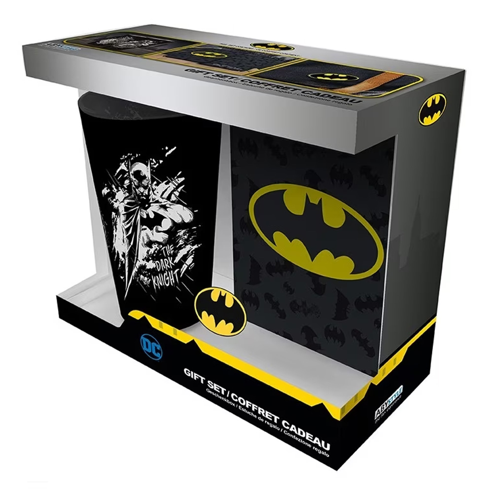 Set sadrži XXL čašu, pin i svesku sa motivima Batman-a.