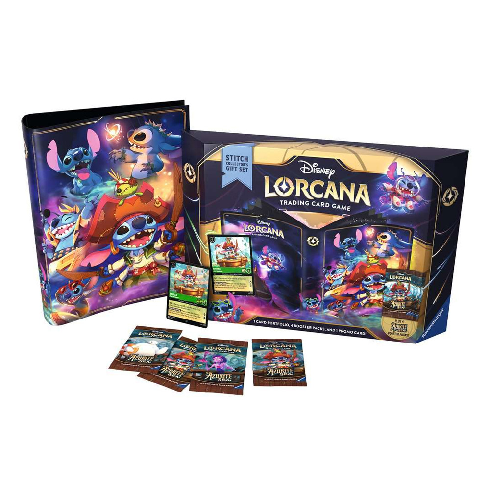 1 album sa 9 džepova u Stitch tematici (252 standardne karte)4 Azurite Sea booster paketa1 Stitch - Alien Buccaneer foil promo karta
