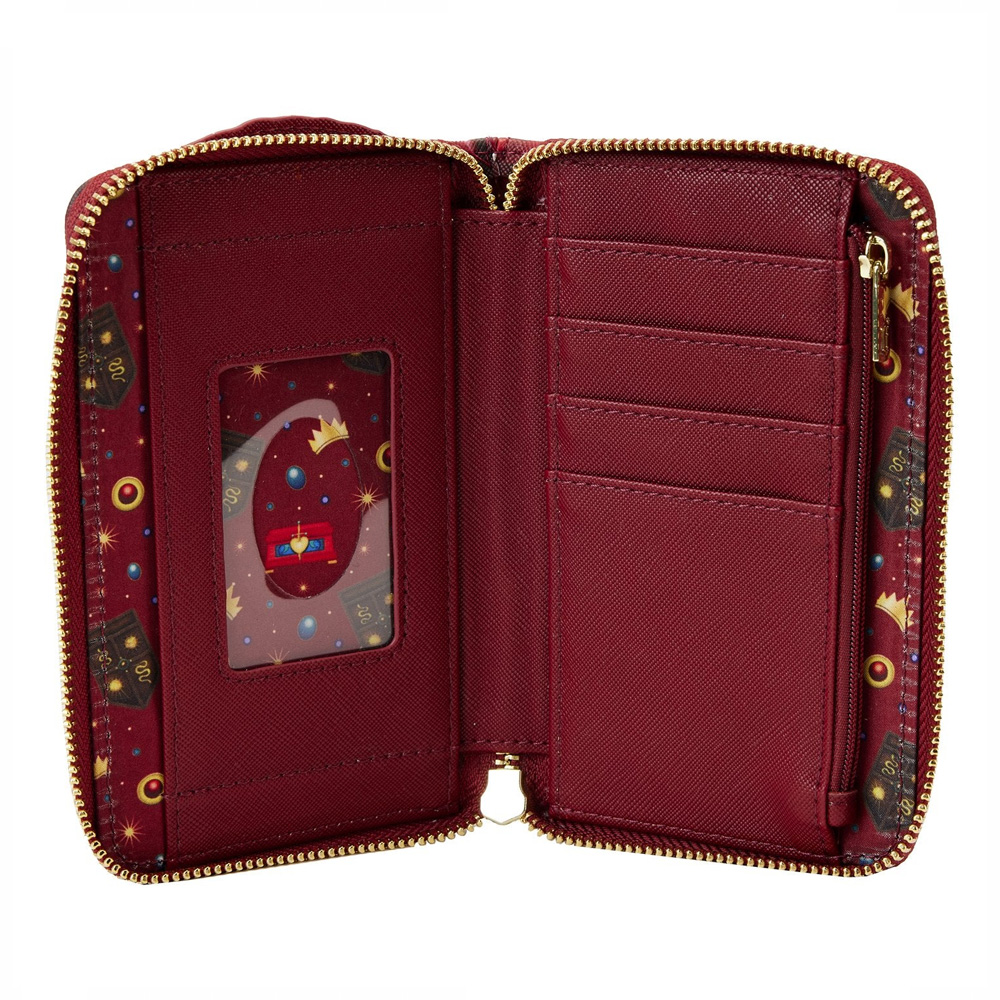 Disney Snow White Evil Queen novčanik je napravljen od veganske kože (poliuretan). Novčanik se zatvara rajsferšlusima, ima čvrst metalni hardver zlatne boje i ima aplikacije, zlatnu foliju i štampane detalje.