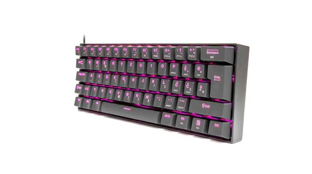 Redragon K630 Dragonborn je mehanička tastatura sa 60% tastera, savršena za PC igrače koji žele da imaju najefikasniju i kompaktniju postavku. Tastatura poseduje visokokvalitetne mehaničke tastere sa Brown svičevima i jednobojno LED pozadinsko osvetljenje u pink boji. Povezuje se sa računarom putem Type-C kabla, za najbolje performance.