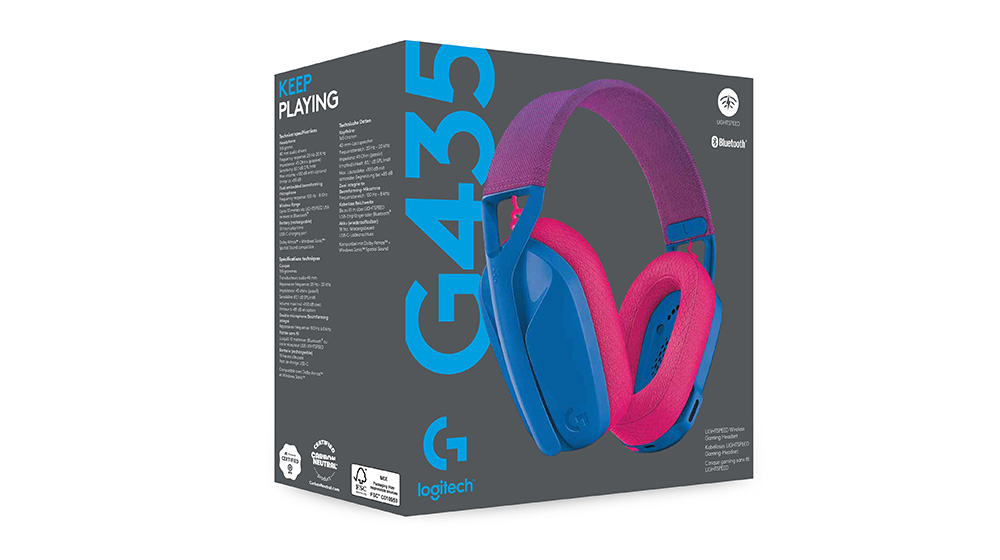 Sa Logitech G435 slušalicama, igra se nikada neće završiti. Igraj igre, slušaj muziku i igraj se sa prijateljima. To je ono što si ti. U svakom trenutku. Za svaki aspekt tvog života.Kombinacija napredne bežične LIGHTSPEED tehnologije i Bluetooth konekcije sa minimalnim zaostatkom, daće ti posebnu slobodu bežičnog povezivanja sa računarom, PlayStation konzolama, telefonom i drugim uređajima. Logitech G435 slušalice poseduju drajvere od 40 mm koji pružaju bogat i imerzivan zvuk, dok integrisani dual beamforming mikrofoni efikasno eliminišu pozadinsku buku.Sa težinom od samo 165 grama, G435 slušalice su ultra lagane i potpuno udobne za nošenje tokom celog dana. Poseduju CarbonNeutral® sertifikat, koji podržava principe održivog razvoja kada je u pitanju ugljenik. Čak 22% konstrukcije slušalica je izrađeno od recikliranog materijala. Papirna ambalaža dolazi iz šuma sa FSC® sertifikatom. Odabirom ovog proizvoda podržavate odgovorno upravljanje svetskim šumama.Nema potrebe da zaustavljaš igru radi punjenja baterije zahvaljujući autonomiji od 18 sati.Sa Logitech G435, ne moraš da brineš da ćeš oštetiti bubnu opnu - slušalice poseduju opciono ograničenje maksimalne jačine zvuka na manje od 85 decibela.