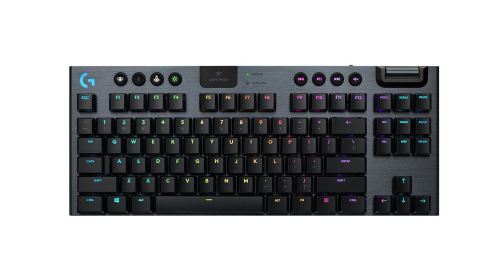 G915 TKL Lightspeed Wireless RGB - GL tastatura je opremljena profesionalnom LIGHTSPEED bežičnom tehnologijom koja pruža super-brze 1ms performanse. Tehnologija omogućava e-sportistima širom sveta korišćenje profesionalnih bežičnih uređaja. Tastatura može da radi i kada je priključena na USB punjač, i omogućava istovremeno punjenje i igranje.Krasi je neverovatno prefinjeno i tanko kućište, a u isto vreme je izdržljiva, udobna i spremna za intenzivno igranje.Gornju površinu tastature prekriva aluminijumska legura 5052 koja se spaja s čelikom učvršćenom podlogom. Svaki detalj na tastaturi postoji s razlogom. Aluminijumski rezbareni kotačić omogućava precizno određivanje jačine zvuka, a meki multimedijalni tasteri omogućavaju intuitivno upravljanje medijskim sadržajima.Površine od brušenog metala i tasteri sa slojem protiv masnoće smanjuju otiske prstiju na minimum. LG Linear tasteri donose u potpunosti gladak pritisak tastera.G915 je opremljen RGB osvetljenjem svakog pojedinačnog tastera u 16.8 miliona boja. Možete napraviti sopstvene animacije boja ili odabrati iz unapred dizajniranih podešavanja.