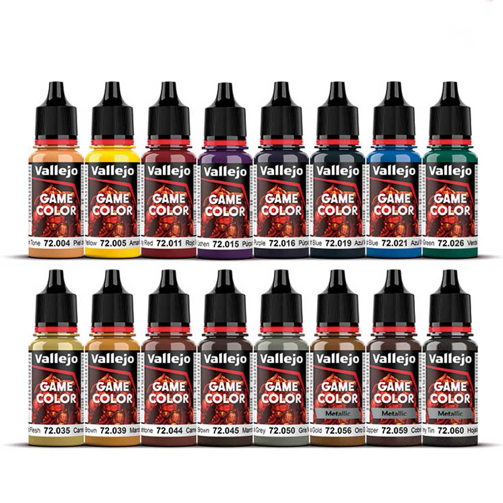 72.004 Elf Skin Tone72.005 Moon Yellow72.011 Gory Red72.015 Hexed Lichen72.016 Royal Purple72.019 Night Blue72.021 Magic Blue72.026 Jade Green72.035 Dead Flesh72.039 Plague Brown72.044 Dark Fleshtone72.045 Charred Brown72.050 Neutral Grey72.056 Glorious Gold72.059 Hammered Copper72.060 Tinny Tin