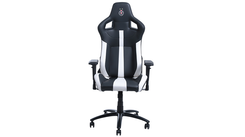 Profesionalna gejming stolica u bojama omiljenog kluba. Koristi se i na stadionima za stručni štab i igrače. Vrhunska izrada i kvalitetni materijali obezbediće besprekornu udobnost prilikom najdužih igračkih sesija.Konstrukcija stolice izrađena je od karbonskog čelika, a osnova je aluminijska, sa pet točkića. Sedalni deo i naslon su obloženi PU kožom. Može se rotirati pod uglom od 360°.