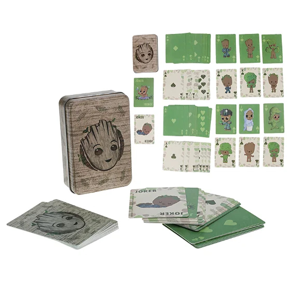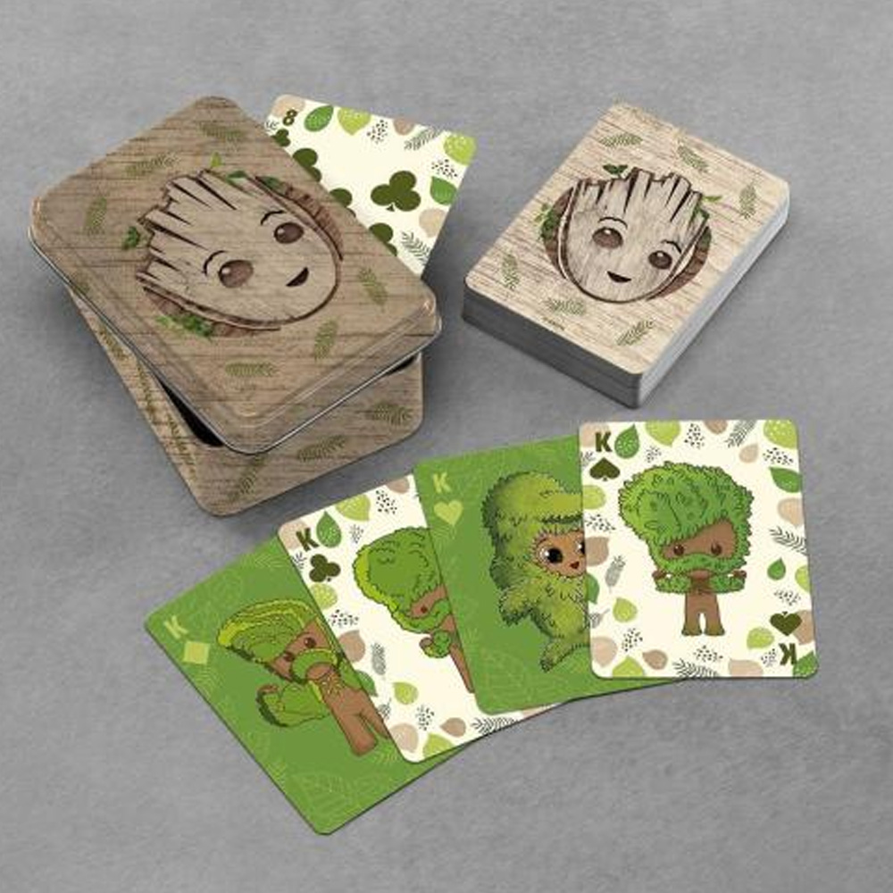 Karte za igranje Paladone Guardians of the Galaxy Groot je špil karata sa voljenim likom Groot-a iz popularne Marvelove franšize. Groot je vanzemaljac nalik drvetu sa ograničenim rečnikom, poznat po svom dopadljivom šarmu i jedinstvenoj ličnosti. Svaka ilustracija na kartama prikazuje Groot-a u različitim pozama i izdanjima. Pored špila karata, dobija se i metalna tematska kutija za njihovo skladištenje, koje ti omogućavaju da ih nosiš svuda sa sobom, bez straha od cepanja i oštećenja karata. Bez obzira da li si strastveni kartaš, entuzijasta Guardians of the Galaxy ili jednostavno voliš jedinstvene i vizuelno privlačne karte za igranje, Paladone Guardians of the Galaxy Groot karte nude priliku za odličnu zabavu i zanimaciju koja traje satima.