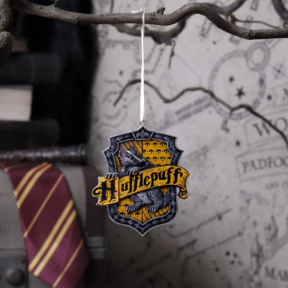 Viseći ukras u obliku Hufflepuff grba, visok 8 cm. Ručno oslikan i izrađen od kvalitetne smole, savršen je za dekoraciju ili kao poklon za ljubitelje Harry Potter sveta.