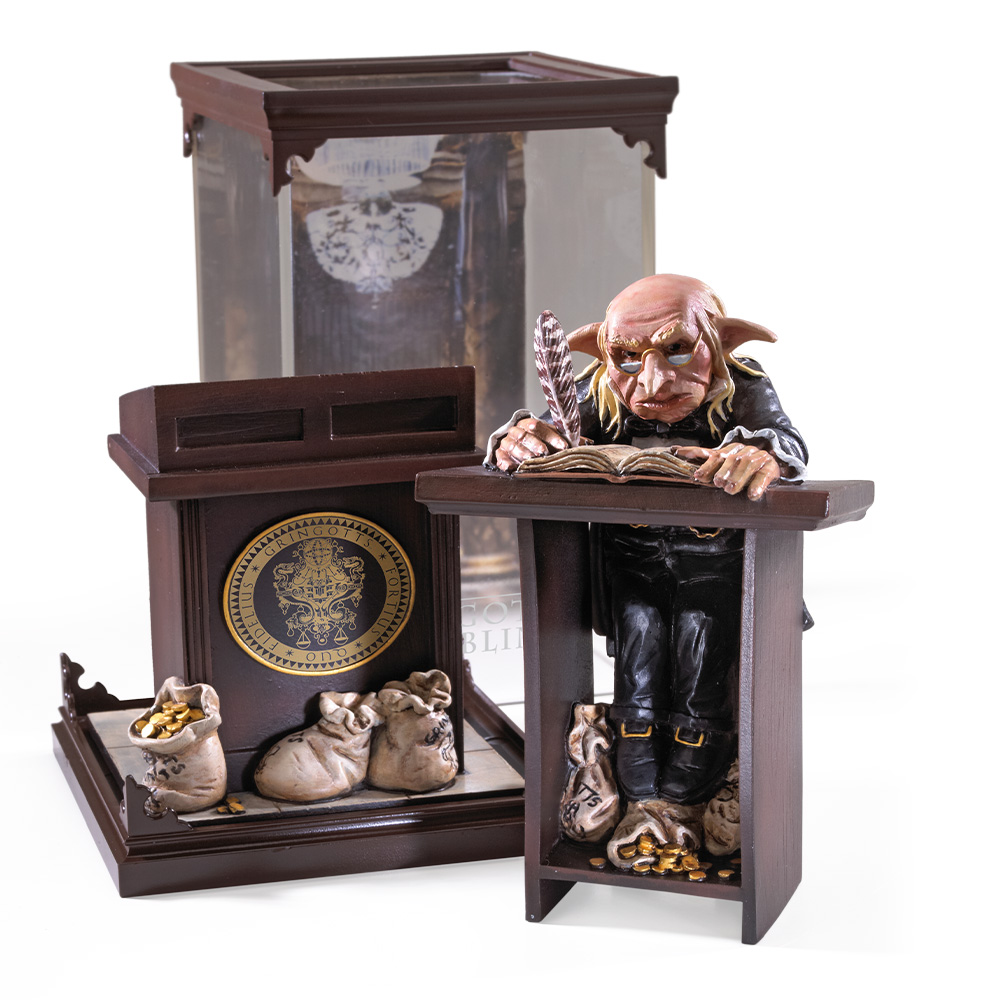 Fino izrađena, ručno oslikana plastična skulptura Gringotts Goblin. The Gringotts Wizarding Bank je u vlasništvu i pod upravom goblina, a osnovao ju je goblin po imenu Gringott.