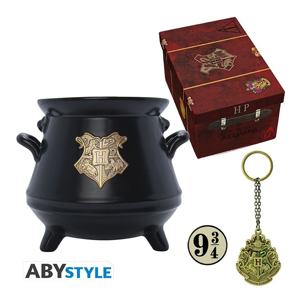 Set Harry Potter koji čine 3D šolja, 3D privezak i bedž.