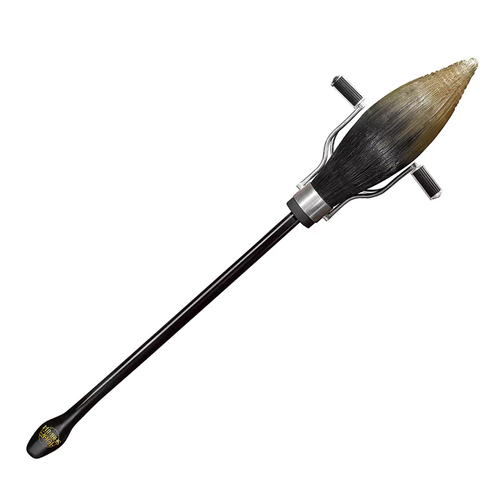 Replika metle Nimbus 2001 sa detaljima ručke i zidnim nosačem.