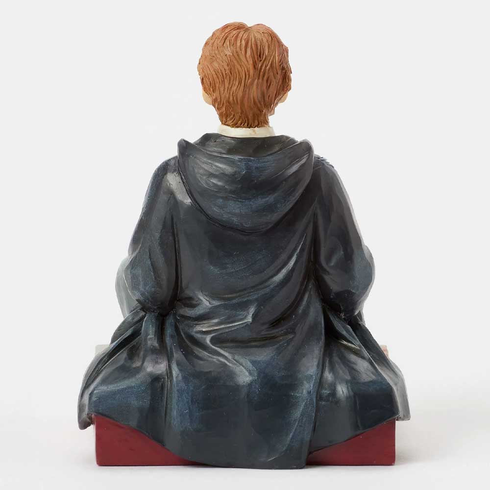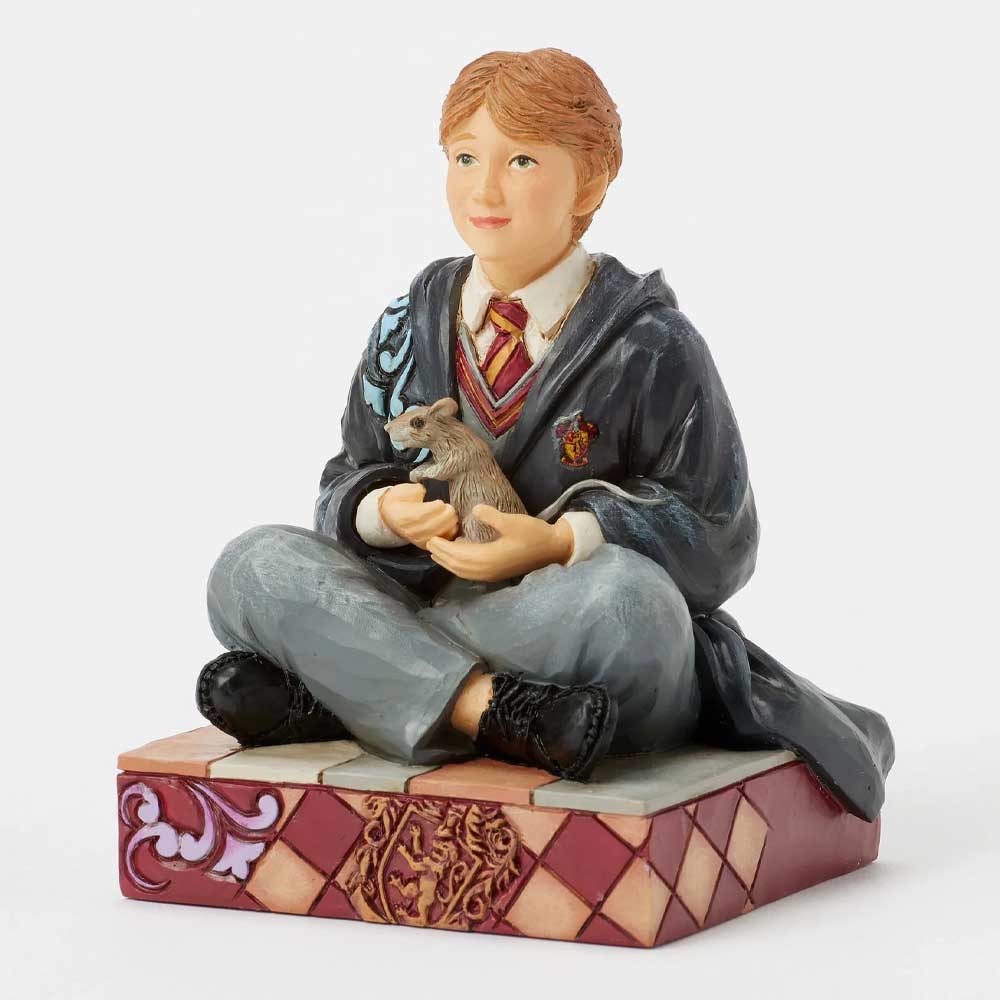 Šarmantna figura iz kolekcije Jim Shore prikazuje Rona Veslija kako sedi na podu u svojim Grifindor odorama, držeći pacova Škrabera u rukama. Uz bogate detalje u narodnom umetničkom stilu i tople boje, figura dočarava Ronovu simpatičnu ličnost i odanost.
