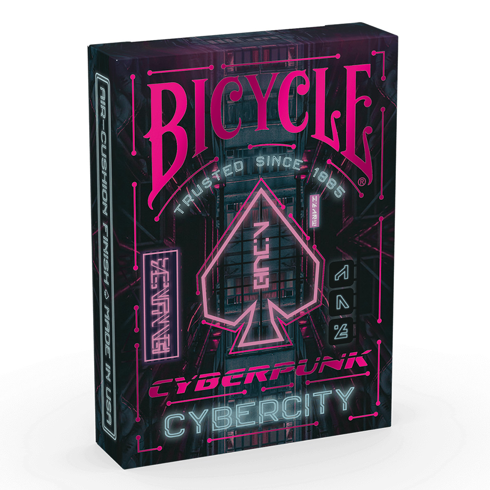 Bicycle Cyberpunk Cybercity spaja visoku tehnologiju sa urbanim gradskim pejzažom budućnosti. Sa prilagođenim ilustracijama kibernetičkih sudskih karata, ovaj špil je savršena mešavina tradicionalnih elemenata karata sa budućnošću inspirisanom naučnom fantastikom.