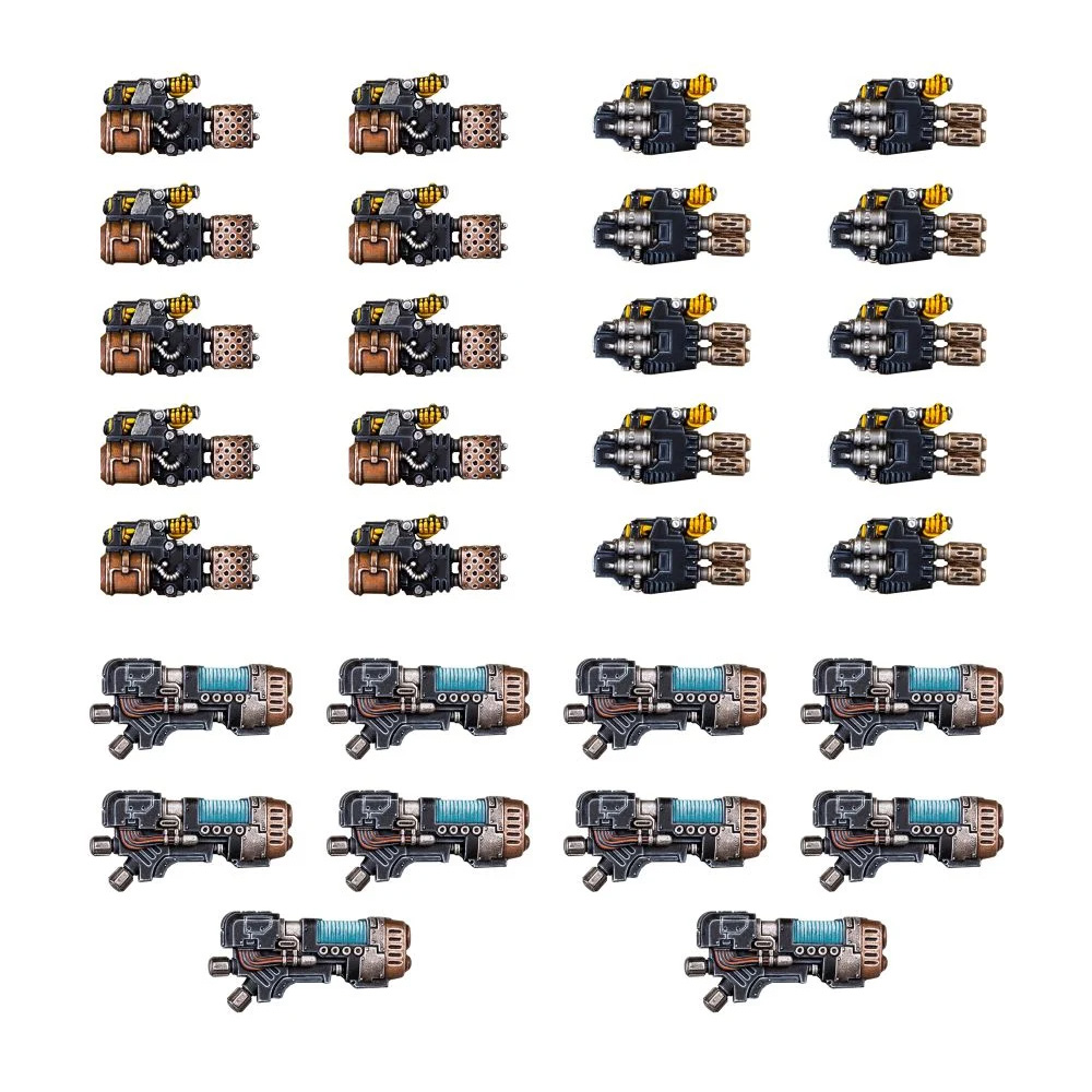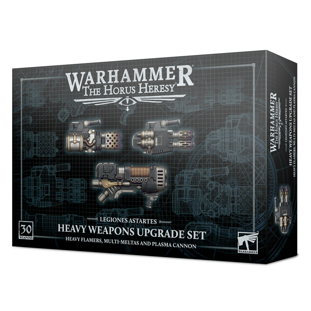 Komplet uključuje 10 teških plamenika, 10 multi-melta i 10 plazma topova, što vam omogućava da nadogradite do tri odeljenja teške podrške od 10 modela, ili šest jedinica od pet modela. Uključena su i četiri skenera za auguriju koji se mogu nositi uz teško oružje, omogućavajući vašim teškim jedinicama podrške da otkriju i eliminišu neprijateljske jedinice. Ovaj komplet za nadogradnju se sastoji od 160 plastičnih komponenti