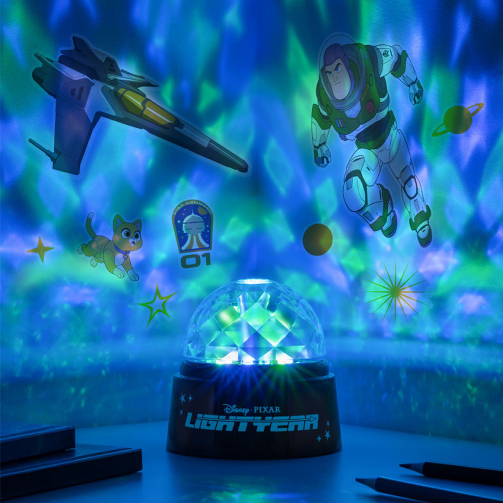 Projekciono svetlo prepoznatljivog dizajna sa dodatkom od 40 zidnih nalepnica. Visine od 9cm, napaje se pomoću 3 x AA baterija (dodatno se kupuju). Zvanično licencirani Disney proizvod. Ukrasite vaš prostor sa noćnom lampom inspirisanom čuvenom Disney franšizom.