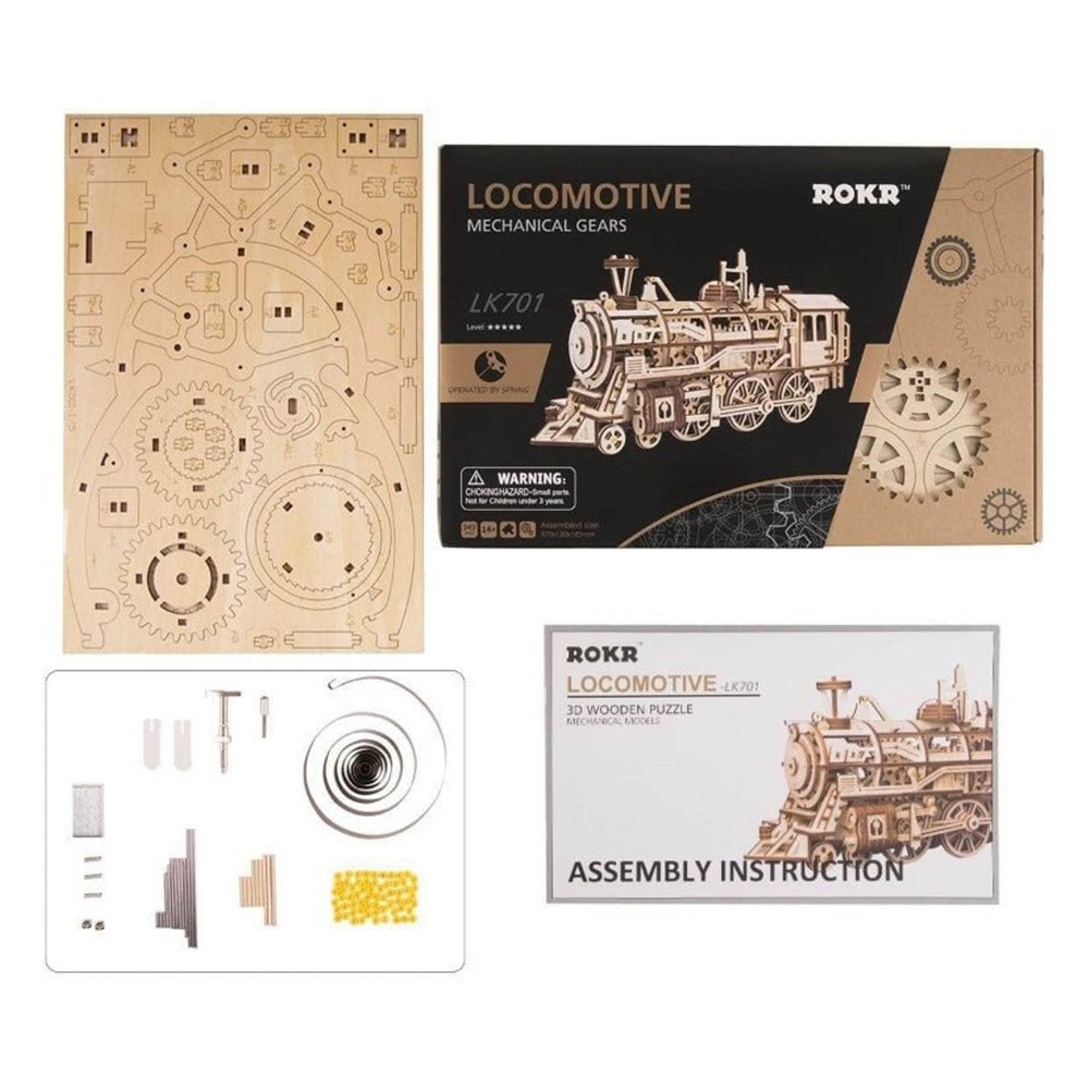 Drvena maketa lokomotive koju ćete morati sami da sklopite ili sa vašom porodicom. Sadrži 349 delova i potrebno je oko 6 sati za sklapanje.