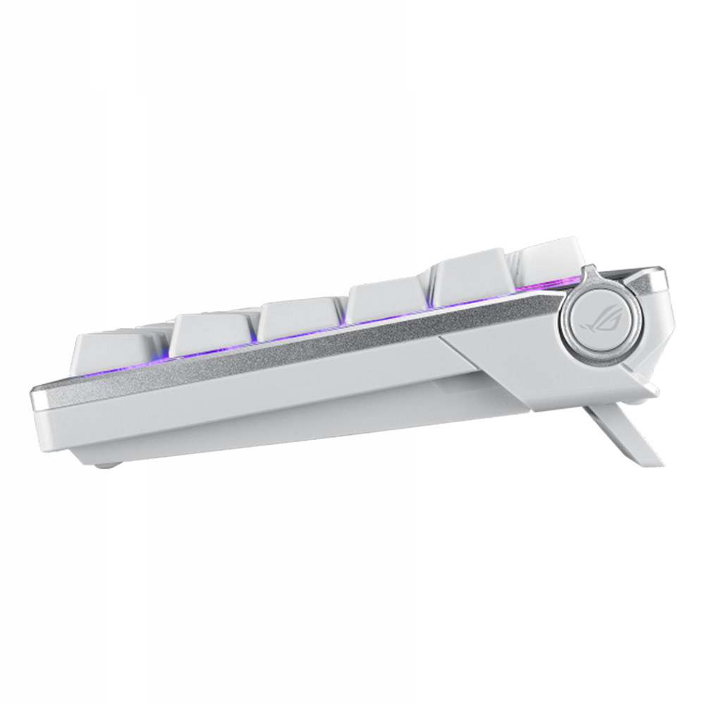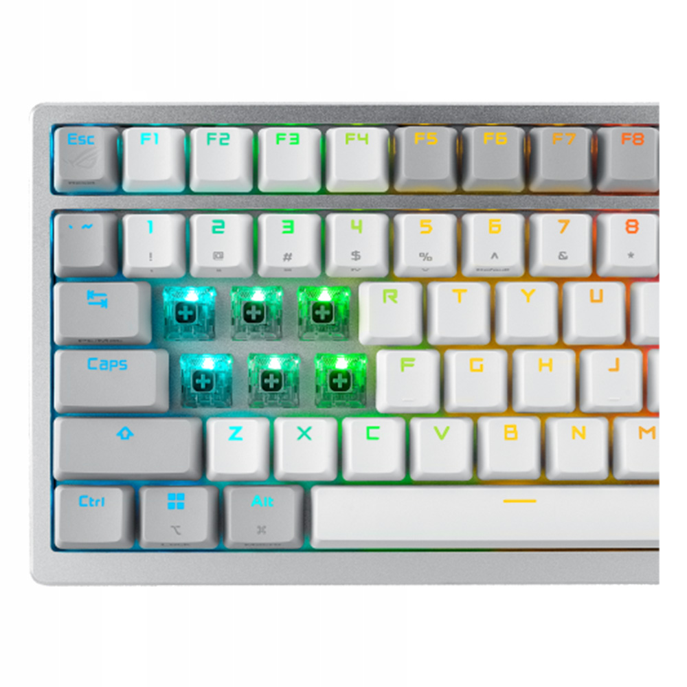 ROG Azoth gaming prilagođena tastatura sa faktorom forme tastature od 75%, zaptivkom, troslojnom penom i metalnim gornjim poklopcem, veoma prilagodljiva sa mehaničkim prekidačima ROG NX sa prethodno podmazanim ROG NX prekidačima, ROG stabilizatorima tastature, PBT duplim poklopcima i kompletom za podmazivanje, tri - konekcija u režimu sa SpeedNova tehnologijom od 2.4 GHz, OLED ekranom, trosmernim kontrolnim dugmetom, tri ugla nagiba i Mac podrškom.