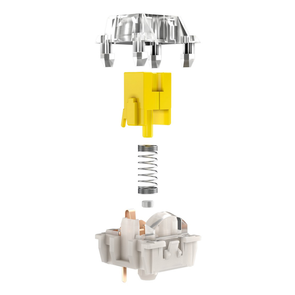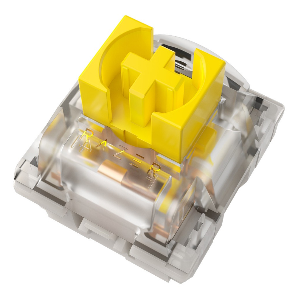 Poboljšan prigušivačima zvuka, Razer žuti linearni mehanički prekidač pruža brzo izvođenje koje je glatko i tiho. Sa nultim rastojanjem između tačke aktiviranja i resetovanja, ovaj prekidač vam omogućava da pritisnete tastere više puta što je brže moguće.