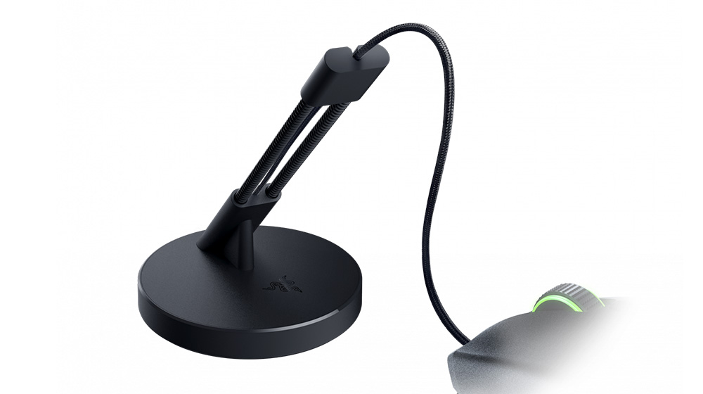 Kablovi na Razer Mouse Bungee V3 Chsu obloženi gumom i napravljeni da odgovaraju većini gumenih, pletenih i parakord kablova za miša. Opružna ruka omogućava nesmetano kretanje miša tako što drži kabl podignutom od površine tvog miša.