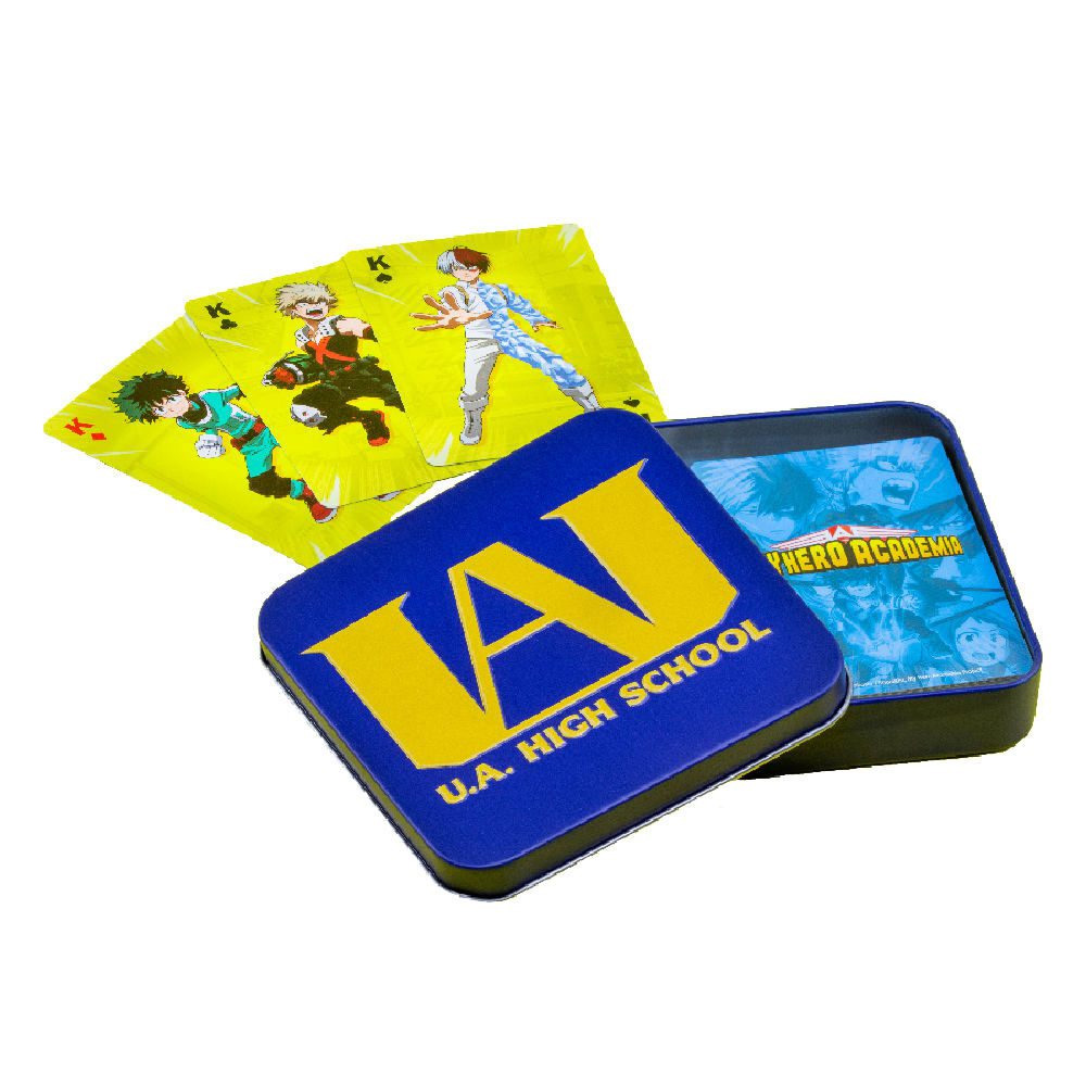 Standardni špil karata sa nestandarnim ilustracijama tvojih omiljenih likova iz My Hero Academia anime franšize. Zbog zaštitne metalne kutije koju poseduje, ovaj set karata će ti biti savršen saputnik gde god da se uputiš.