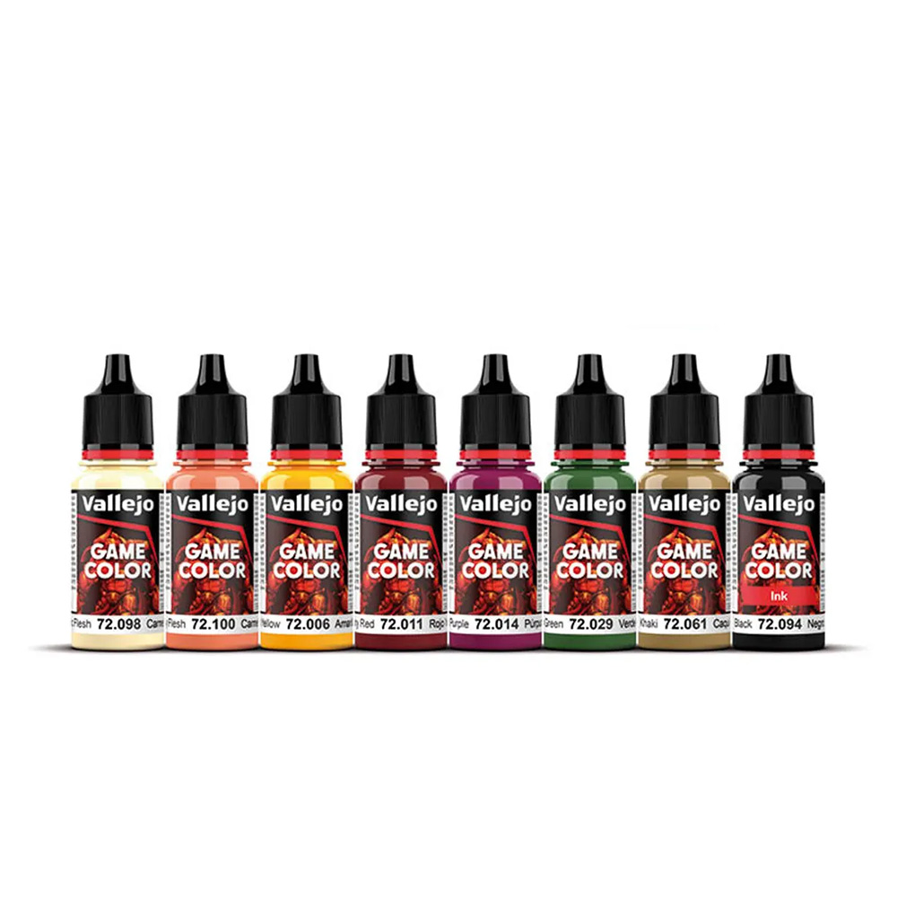 72.098 Elfic Flesh72.100 Rosy Flesh72.006 Sun Yellow72.011 Gory Red72.014 Warlord Purple72.029 Sick Green72.061 Khaki72.094 Black Ink