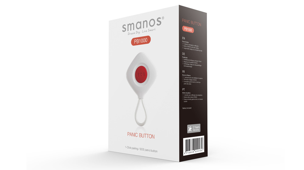 Bezični panik taster dometa do 80m. Kompitabilan je sa svim Smanos alarmnim sistemima.