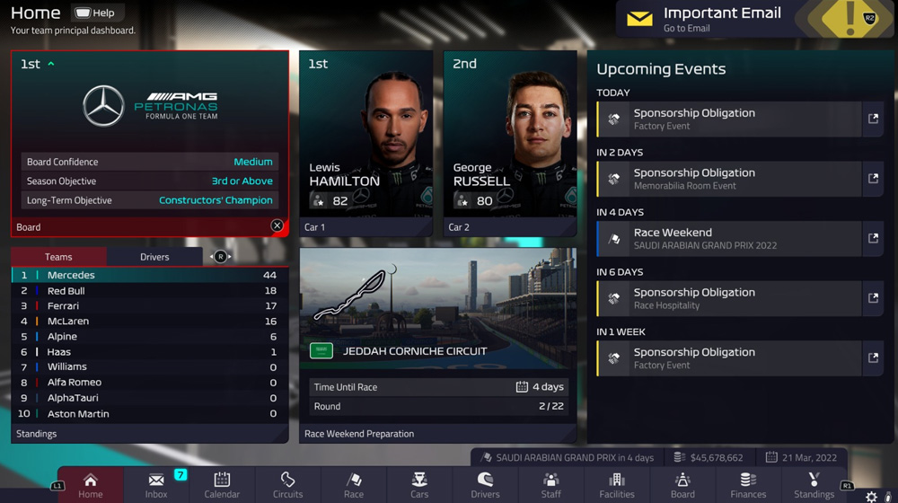 Upravljajte svojim timom vozača i ostavite svoj znak u svetu Formula 1® u ovom zvaničnom licenciranom simulatoru trkačkog menadžmenta, F1® Manager 2022. Budite šef svom izabranom konstruktoru i izaberite nekog iz grupe igrača i osoblja iz 2022. Uz kompletne licence za F1® i prezentacije koje su u skladu sa realnim, vi nećete samo igrati F1® Manager 2022 — vi ćete ga doživeti.