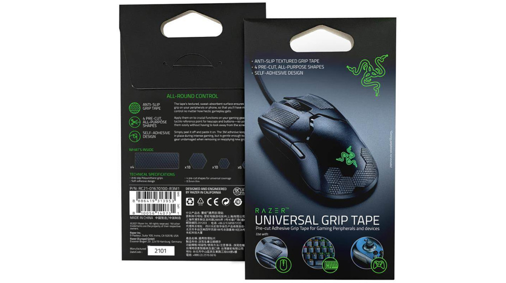Razer univerzalna teksturisana traka protiv klizanja sa samolepljivim dizajnom. Namenjena je da unapredite korišćenje svog računara, konzole ili mobilnih telefona, tako što ćete traku zalepiti na tastere tastature, miša, kontrolera ili drugih vama važnih kontaktnih tačaka, kako biste imali potpunu kontrolu nad korišćenjem. Traka ima četiri unapred isečena, višenamenska oblika sa samolepljivim dizajnom za laku primenu, a možete je raščlaniti na 46 delova. 3M lepak drži traku čvrsto na mestu tokom intenzivnog igranja, ali je dovoljno nežan da vašu opremu ostavi neoštećenom prilikom uklanjanja ili ponovnog postavljanja novih.Teksturirana površina trake upija znoj, tako da ćete uvek imati kontrolu bez obzira na to koliko je užurbano igranje.