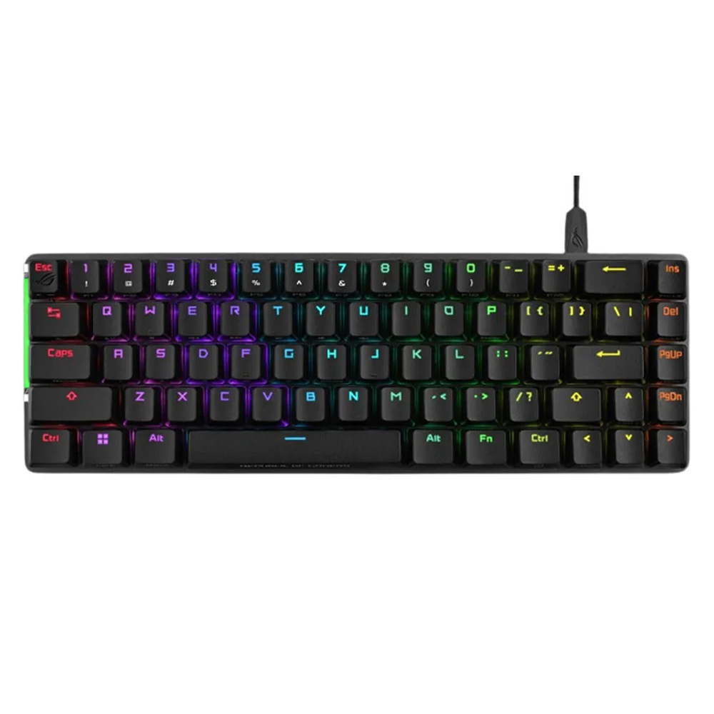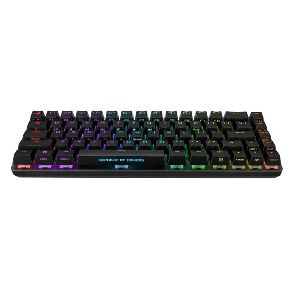 Tastatura od 65% u okviru od 60% majstorski uključuje strelice i tastere za navigaciju. Podmazani ROG NX mehanički switch-evi obezbediće glatkije klikove i eliminisanje buke. Specijalno dizajniran stabilizator ROG switch-eva koji obezbeđuju glatke pritiske tastera i njihovu stabilnost, plus ROG PBT dupli tasteri i ugrađena pena za prigušivanje zvuka za poboljšanu akustiku. Interaktivni panel je osetljiv na dodir za lako prilagođavanje. Tri ugla nagiba tastature nude udobnost i kontrolu.
