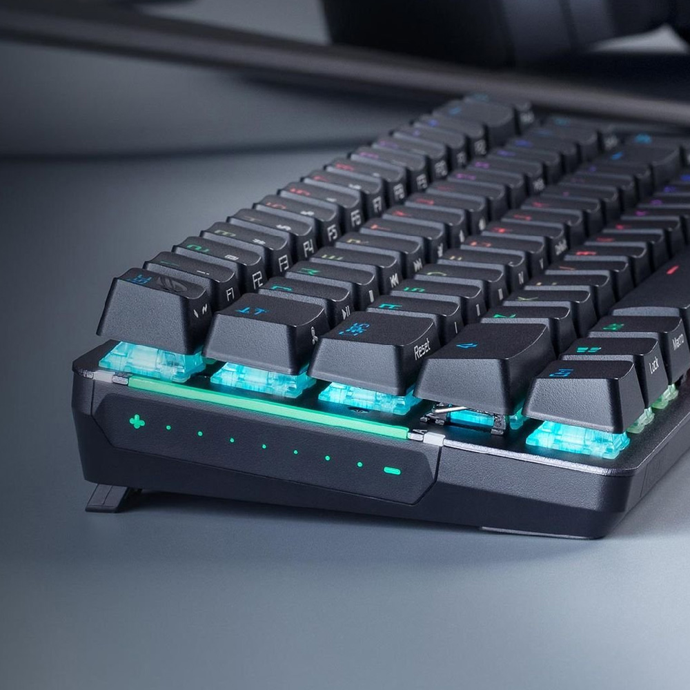 ROG Falchion je bežična mehanička tastatura sa 65% tastera, dizajnirana da promeni način igre. Ima interaktivnu dodirnu ploču i inovativno dvosmerno kućište, kao i Aura Sync RGB osvjetljenje. Tasteri imaju izdržljive poklopce za dvostruki ROG polibutilen tereftalat (PBT) i mehaničke prekidače nemačke proizvodnje Cherry MX RGB - za precizne, taktilne pritiske tastera. Sa samo 306 mm dužine, ROG Falchion je gotovo iste veličine kao 60% tastatura. Pruža vam sve funkcije tastature, bez zauzimanja puno prostora na radnoj površini. Gotovo nula kašnjenja od 2,4 GHz RF veze i do 450 sati trajanja baterije pružaju stabilnost i dugotrajnost igračima. Može se koristiti i u žičnom USB režimu. Uz Aura Sync RGB, čitav spektar boja i niz dinamičkih svetlosnih efekata slušaju vašu naredbu, tako da možete stvoriti unikatnu tastaturu.