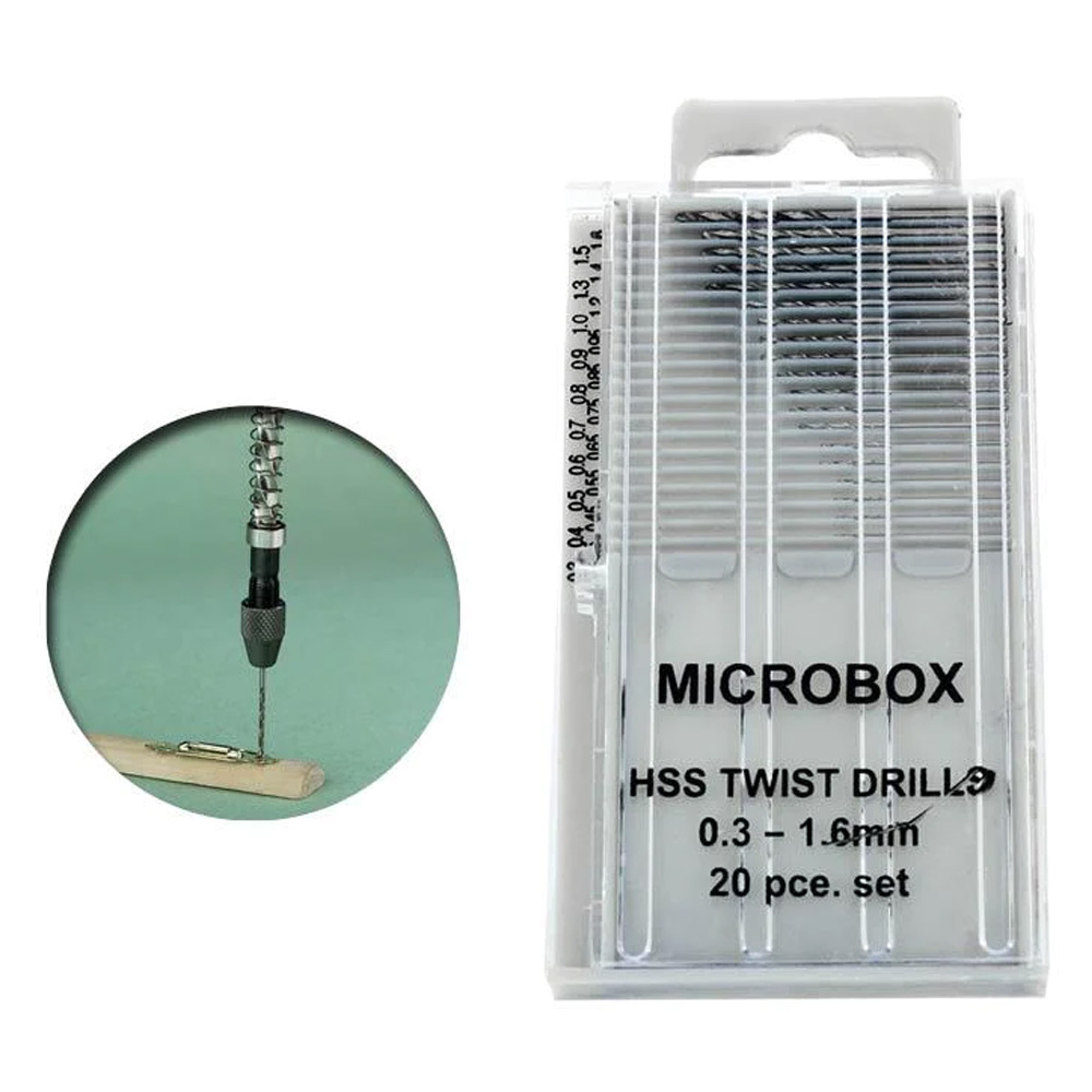 Set od 20 burgija dimenzija od 0.3 mm do 1.6 mm.