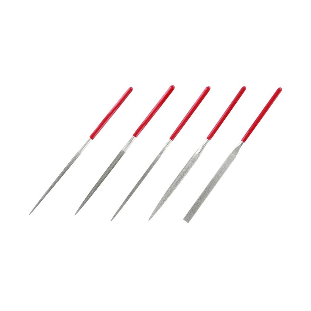 Set od 5 mini dijamantskih turpija dužine 140mm (ravnih, kvadratnih, okruglih, poluokruglih i trouglastih) za rad na različitim oblicima i konturama.