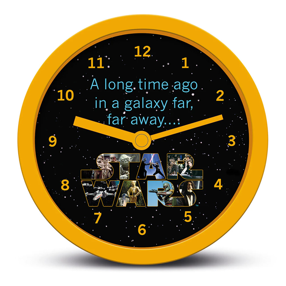 Okrugli stoni sat sa motivima iz popularnog serijala Star Wars.Prečnik sata je 12 cm.