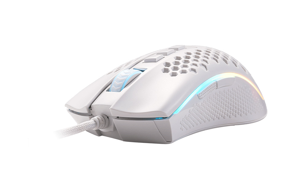 Redragon Storm M808 White gejmerski miš izgrađen od gejmera za gejmere. Kućište Storm M808-RGB gejmerskog miša koristi dizajn košnice sa matiranom površinom, nudi neograničene mogućnosti i neograničen potencijal za maksimiziranje vaše preciznosti. Kabl je od najlakšeg materijala da bi se smanjila težina, povećala fleksibilnost i što manje smanjilo trenje. Dostupno je 7 tastera za redefinisanje i dodeljivanje kombinacija makro tastera, lako rukovanje u bilo kojoj situaciji. Pored svog laganog dizajna, Pixart 3327 senzor pruža najbolji odgovor u vašim igrama. Omogućuje šire pokrete, glađe poteze, bržu brzinu reakcije u igri.