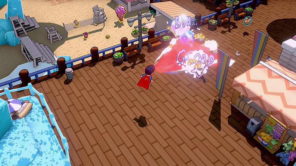 Ujedinite se protiv haosa, u potpuno novoj avanturi otvorenog sveta u kojoj se Liga pravde sukobljava sa gospodinom Mr. Mxyzptlk-om, moćnim šaljivdžijom iz 5. dimenzije. Obucite se kao Betmen, Čudesna žena i Supermen i suočite se sa nekim od najmoćnijih super-zlikovaca u DC univerzumu i epskoj bitci za donošenje mira u Happy Harbor.