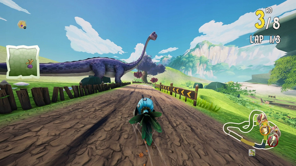 Budite svoj omiljeni dino i ubrzavajte Kretaciju u prvenstvu u kartingu za do 4 igrača. Trkajte se na 15 staza prepunih uzbudljivih prepreka - uključujući samog velikog Gigantosaurusa! Pokupite sjajna pojačanja koja vam daju ubrrzanje, prečicu ili način da nokautirate svoje rivale.