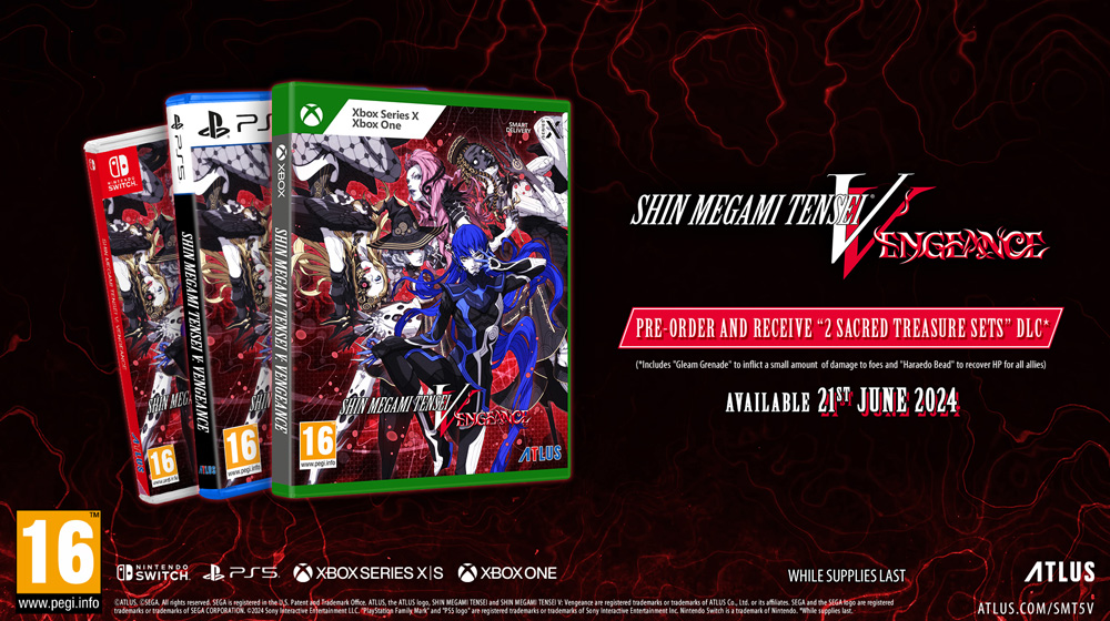 Shin Megami Tensei V: Osveta sastoji se od dva putovanja kroz priču: iskusite potpuno novi pravac, "Kanon Osvete" - dramatičnu priču o osveti palih, koja se fokusira na nove likove i enigmatičnu grupu demona, Qadištu, koji kuju mračne planove odvojeno od rata onih koji se bore za održavanje reda i onih koji žele da mu prkose. Ili istražite originalnu priču ispričanu u Shin Megami Tensei V, "Kanon Stvaranja" - večni sukob između anđela i demona, u kojem se protagonista bori za sudbinu sveta.