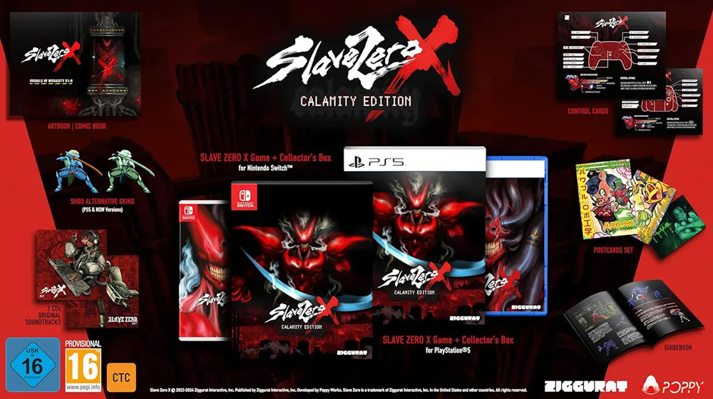 Slave Zero X - Calamity Edition uključuje:– osnovnu igru– Sav sadržaj uključen u standardno izdanje (vodič, kontrolna kartica i ekskluzivni skin)– ekskluzivna umetnička knjiga pod nazivom „Vizuelni prikazi Megasitija S1-9“, koja takođe uključuje strip (na engleskom)– 3 zapanjujuće umetničke karte– 2 CD-a sa originalnim Slave Zero X zvučnim zapisima– Kolekcionarsku kutiju