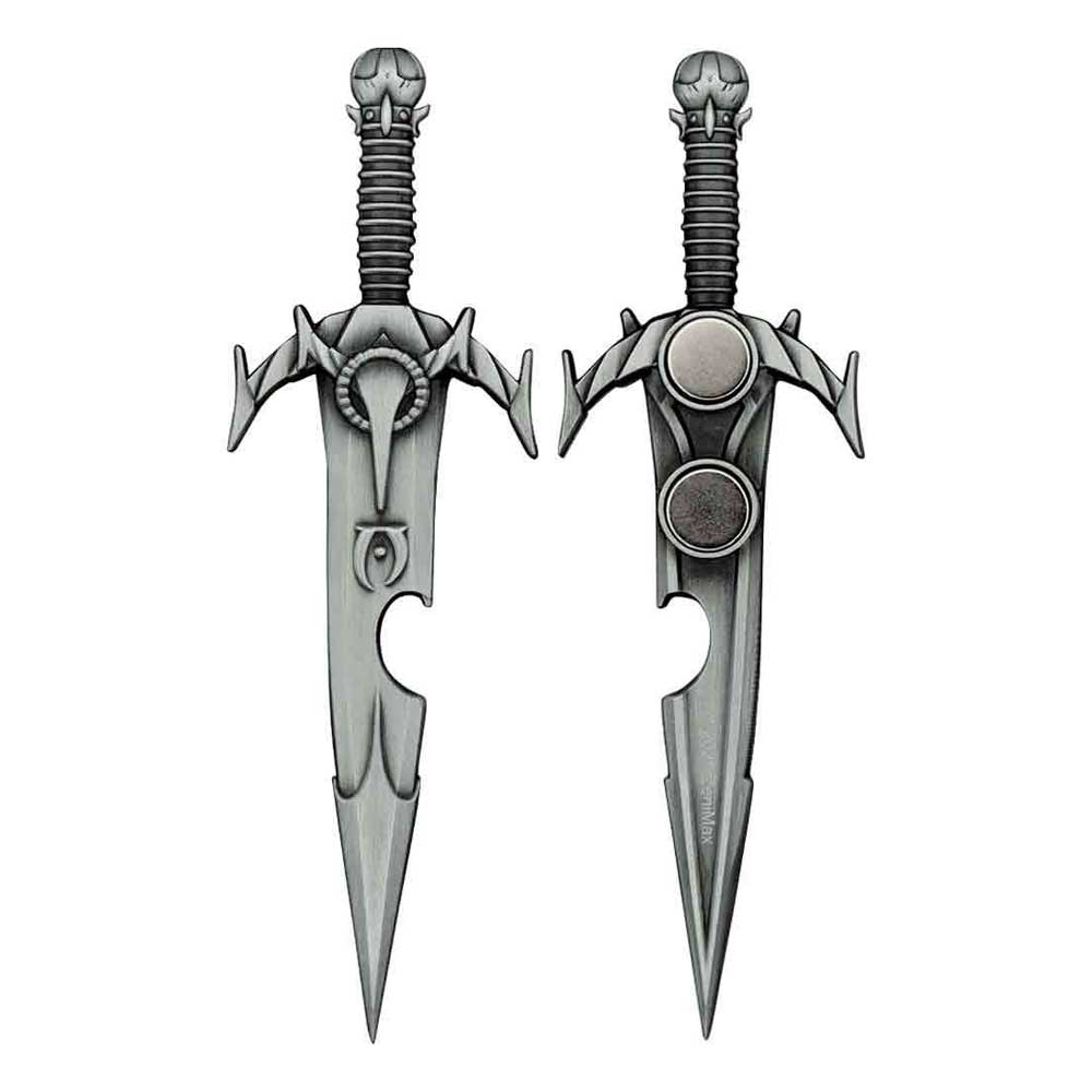 Ova zvanično licencirana replika u obliku otvarača za flaše izrađena je od metala sa antik nikl premazom, a u sečivu ima otvor za otvaranje flaša. Na poleđini se nalazi magnet za lako odlaganje.