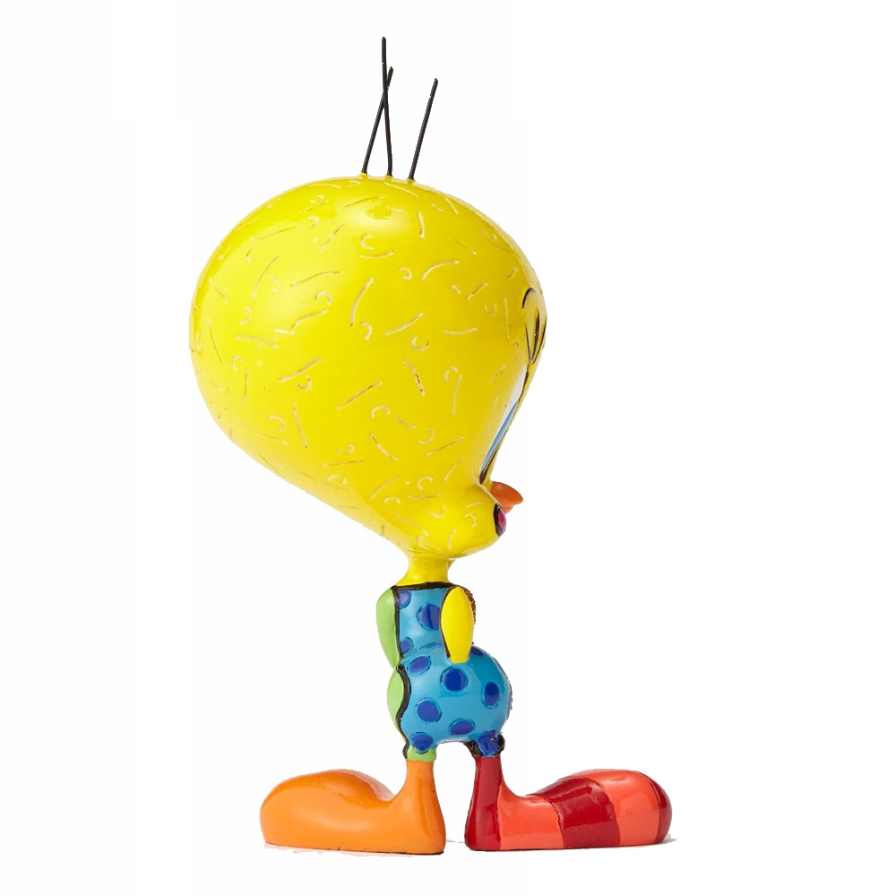 Tviti, mala žuta figurica kanarinca. Svaka figurica Looney Tunes by Britto, ukrašena u pop art stilu od strane međunarodnog umetnika Romero Britto, napravljena je od ručno oslikane smole sa sjajnom završnom obradom laka.