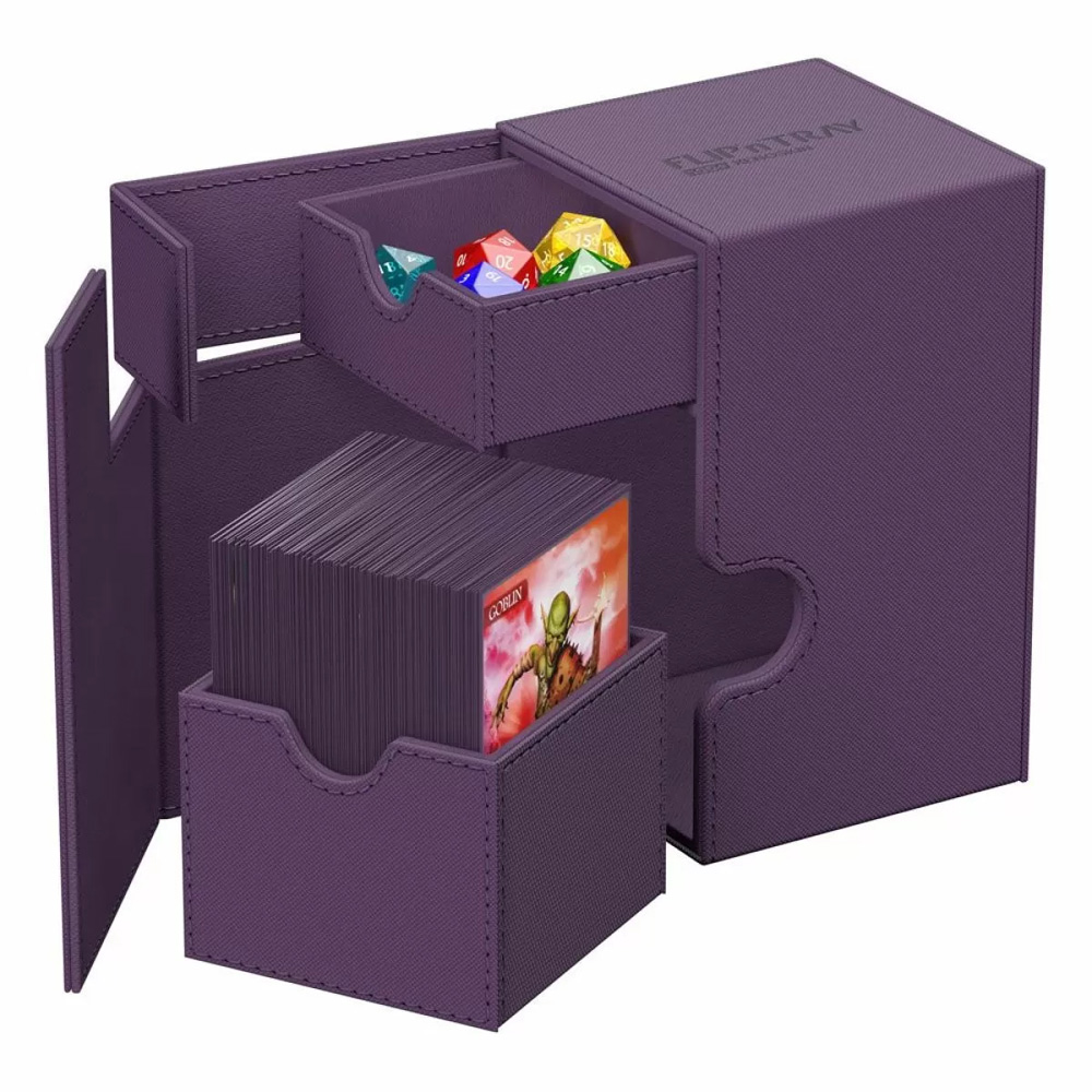 Kutija za špil Ultimate Guard: bezvremenski dizajn sa jakim magnetnim zatvaračem, ležištima za kartice i kockice za bezbedno skladištenje vašeg špila, i otpornom, ali glatkom Xenoskin površinom. Sa prostorom za 80 kartica sa duplim rukavima ili 100 kartica sa jednim rukavom standardne veličine