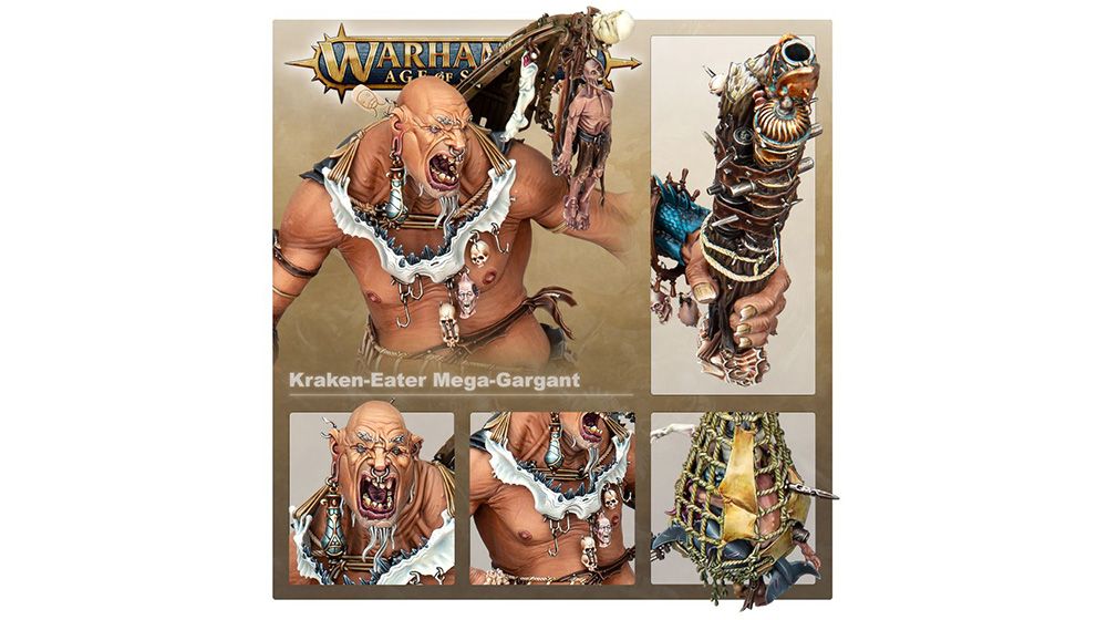 Warhammer Age of Sigmar je ratna igra sa minijaturama. Igrač simuliraju bitke sa modelima ratnika i čudovista na stolu koje je bojno polje sa terenom koji je sastavljen od modela brda, šuma I raznih građevina. Svaki igrač uzima potez da bi pomerao svoje modele po tabli i tako simulirao borbu sa protivničkim modelima. Ove zamišljene borbe se rešavaju kockicama i jednostavnom geometrijom.Priča Warhhamer Age of Sigmar je smeštena u svet epske fantastike, gde se ratnici I mitska čudovišta bore za prevlast. Srednjovekovna oružja i magija krase ovaj svet kao i razna fantazijska bića kao što su vilenjaci, patuljci, orci, trolovi i mnoga druga.Ovaj set gradi Mega-Garganta koji jede krakena – posvećenog hvatača čudovišta koji je dostupan bilo kojoj sili Order ili Destruction – ili jednu od sledeće dve varijante:- Warstomper – zver koja žvaće pešadiju dostupan svim silama Chaos ili Destruction- The Gatebreaker – razbijač garnizona dostupan svim silama Death ili Destruction